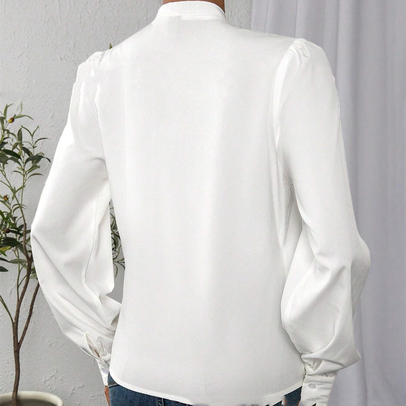 Be the first to review “Casual Long Sleeve V-neck White Shirt Top Solid Color”