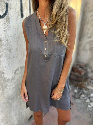Cotton Linen Loose Sleeveless Cotton Linen Shirt Dress