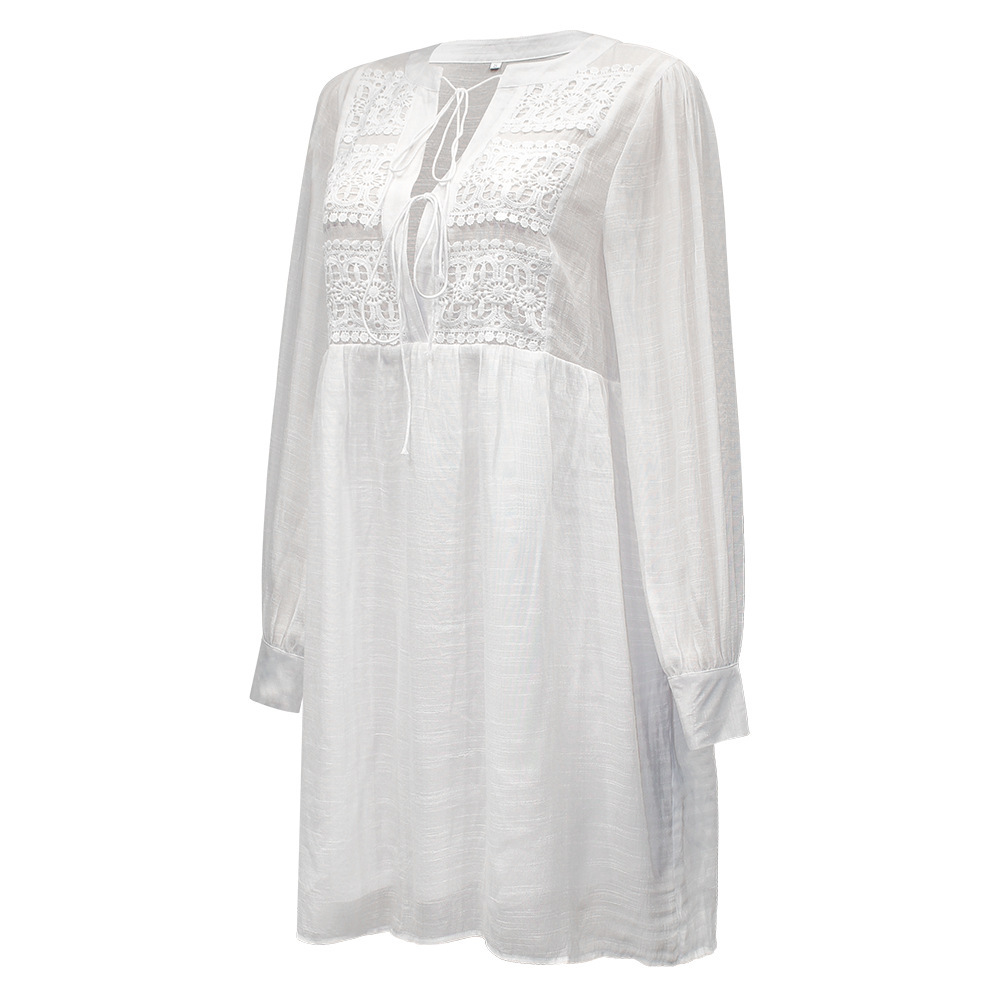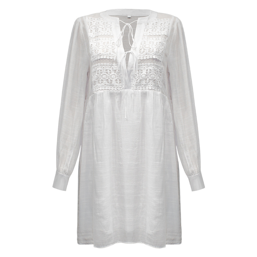 European And American Women’s Fashion Solid Color Long-sleeved V-neck Loose Casual Dress