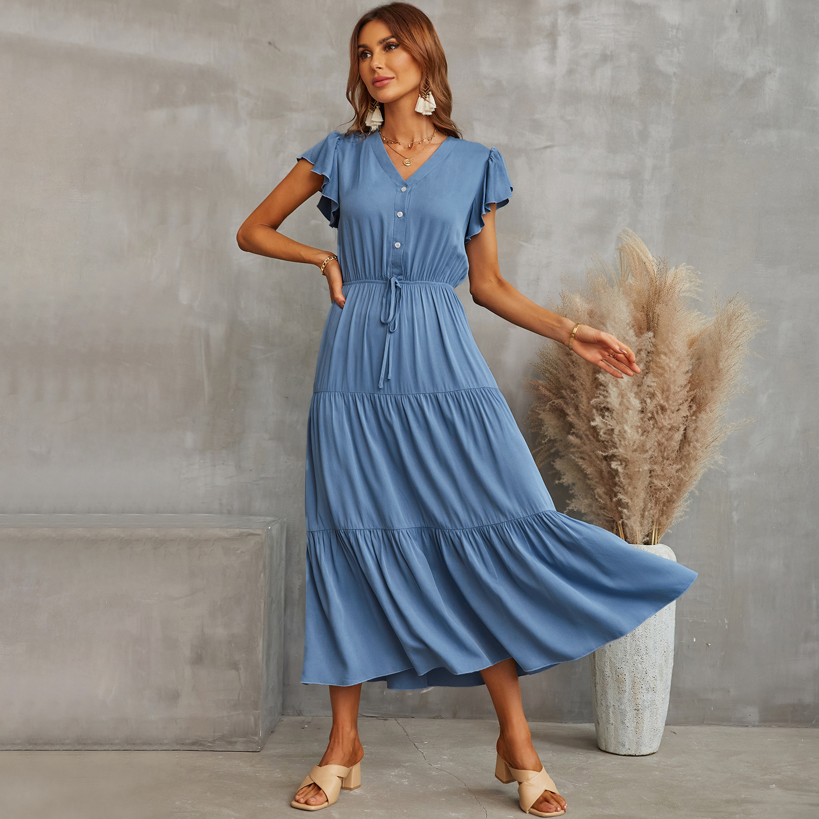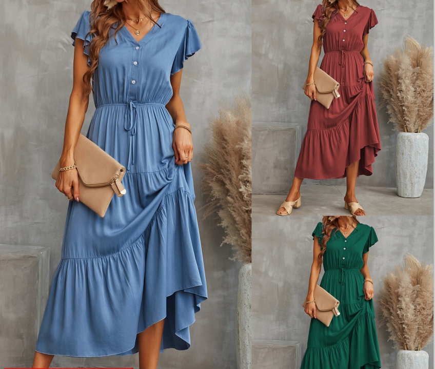 Be the first to review “European And American Women’s Solid Color V-neck Dress Cake Skirt”