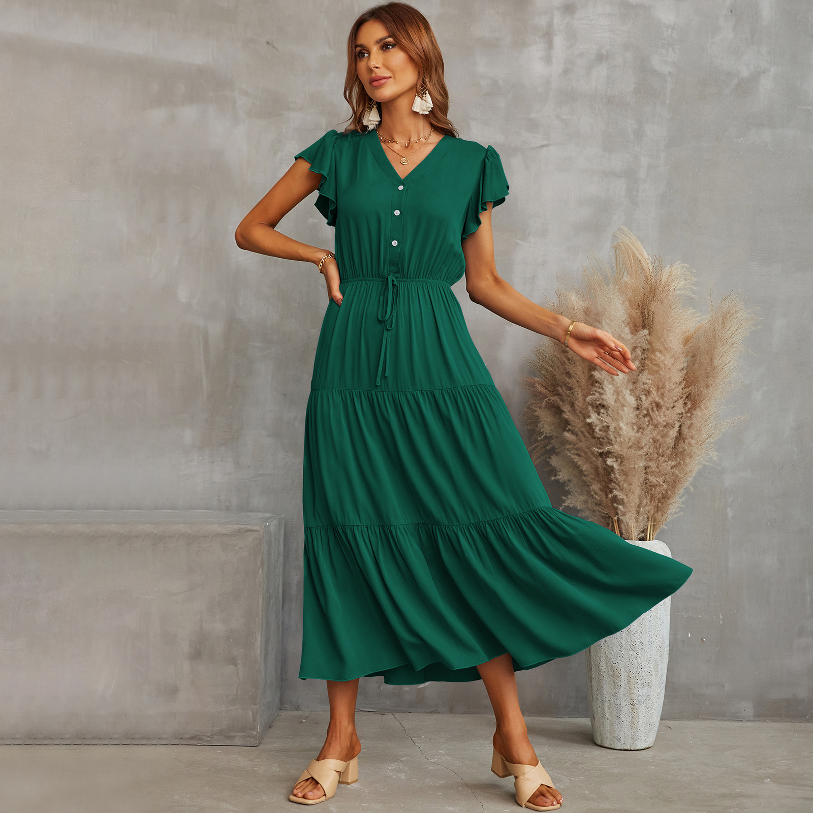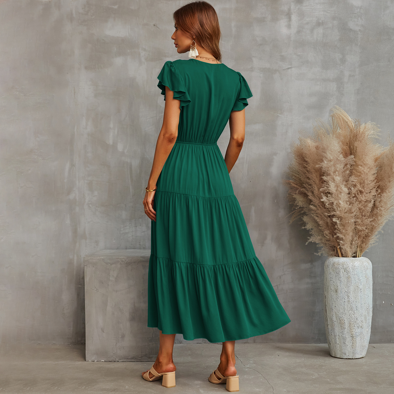 European And American Women’s Solid Color V-neck Dress Cake Skirt