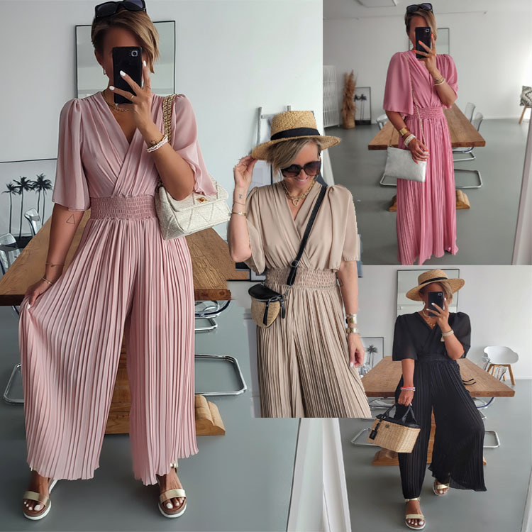 Be the first to review “Four Seasons Home Fashion Pleated V-neck Leisure Vacation Wide-leg Pants Jumpsuit”