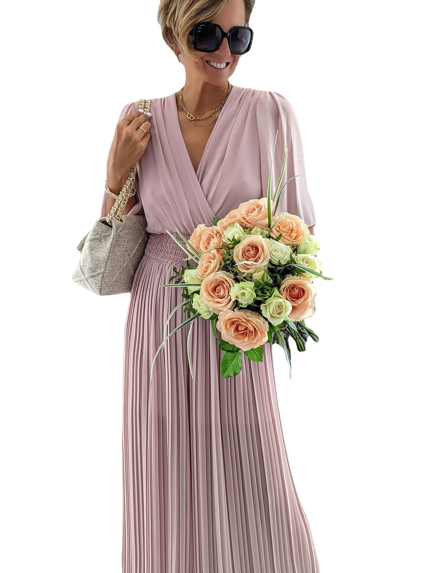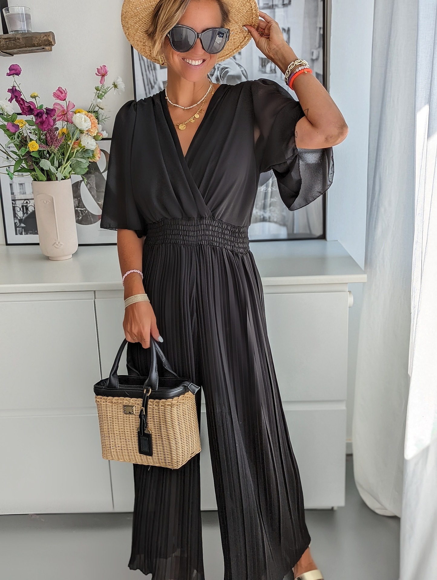 Four Seasons Home Fashion Pleated V-neck Leisure Vacation Wide-leg Pants Jumpsuit