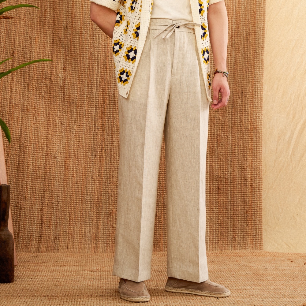 Linen Loose High Waist Lace Trousers With An Elasticated Waist Casual Pants