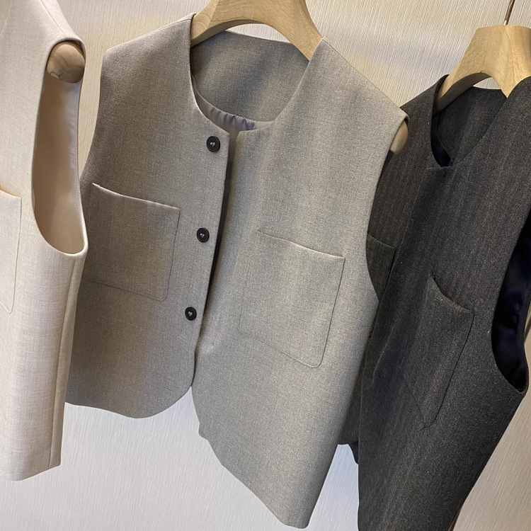 Loose Round Neck Sleeveless Suit Vest For Women