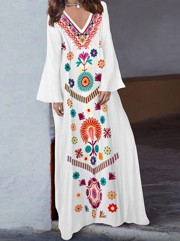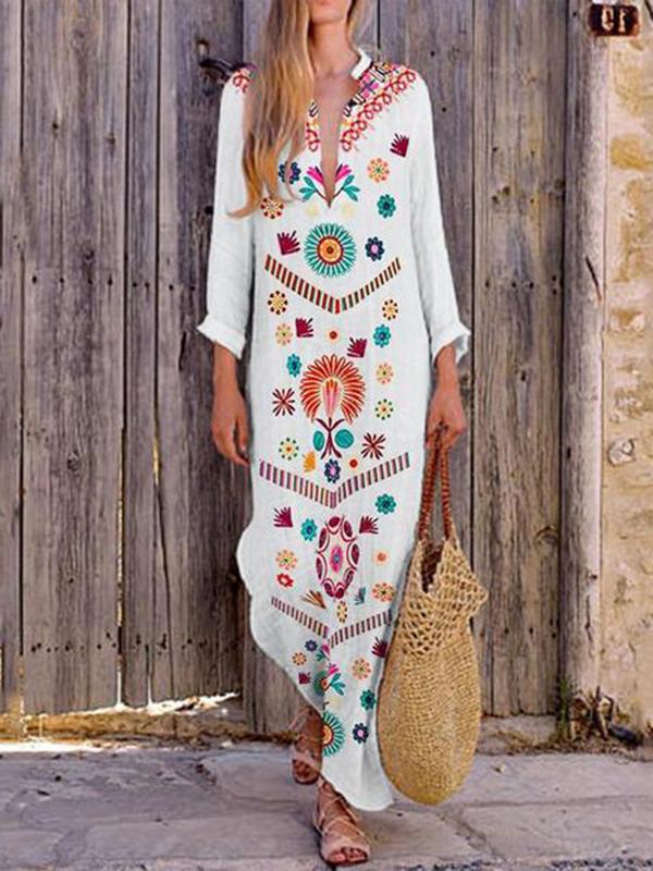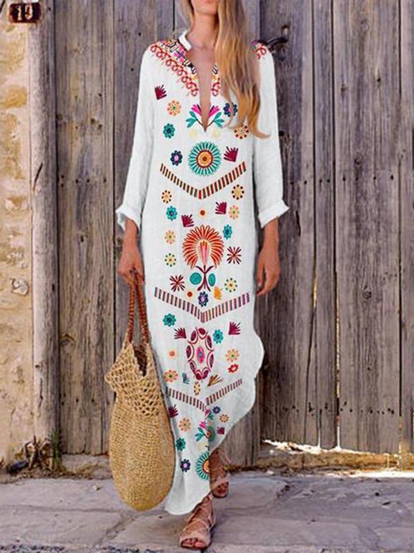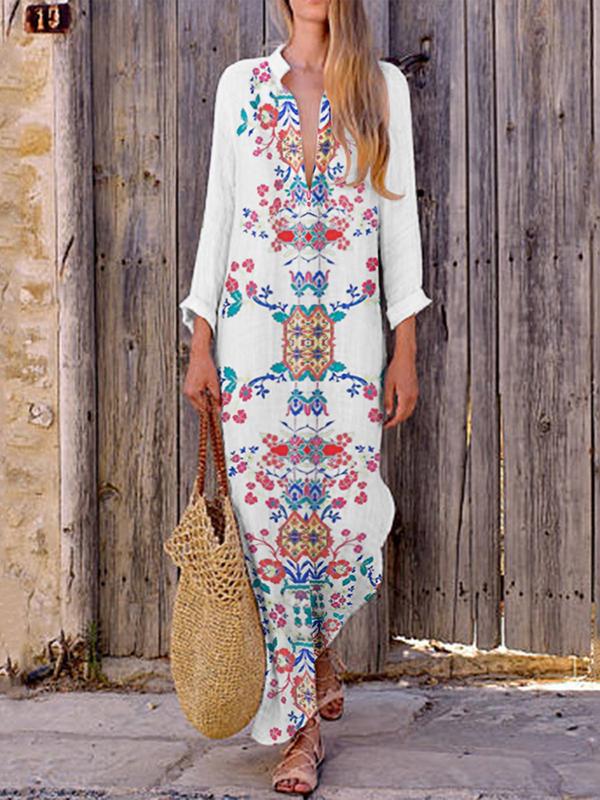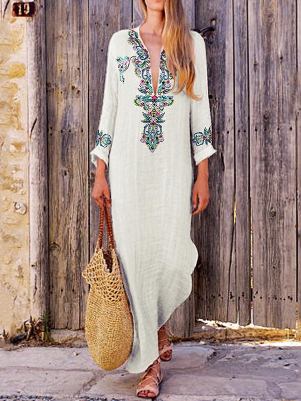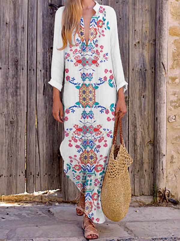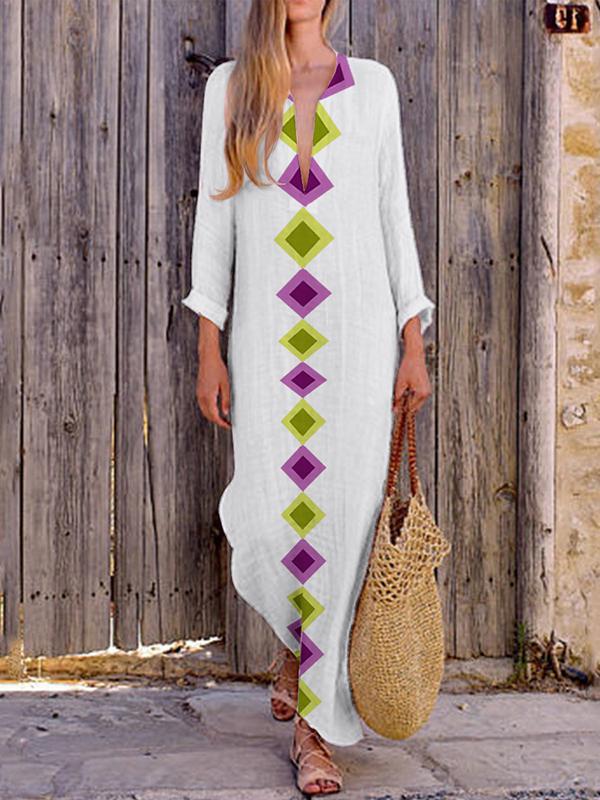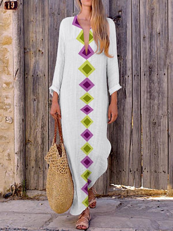 Loose V-neck slit long skirt