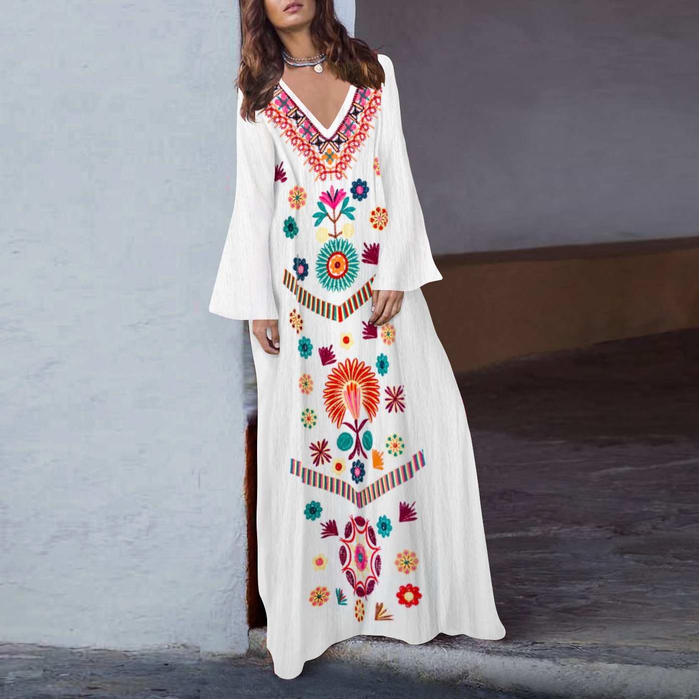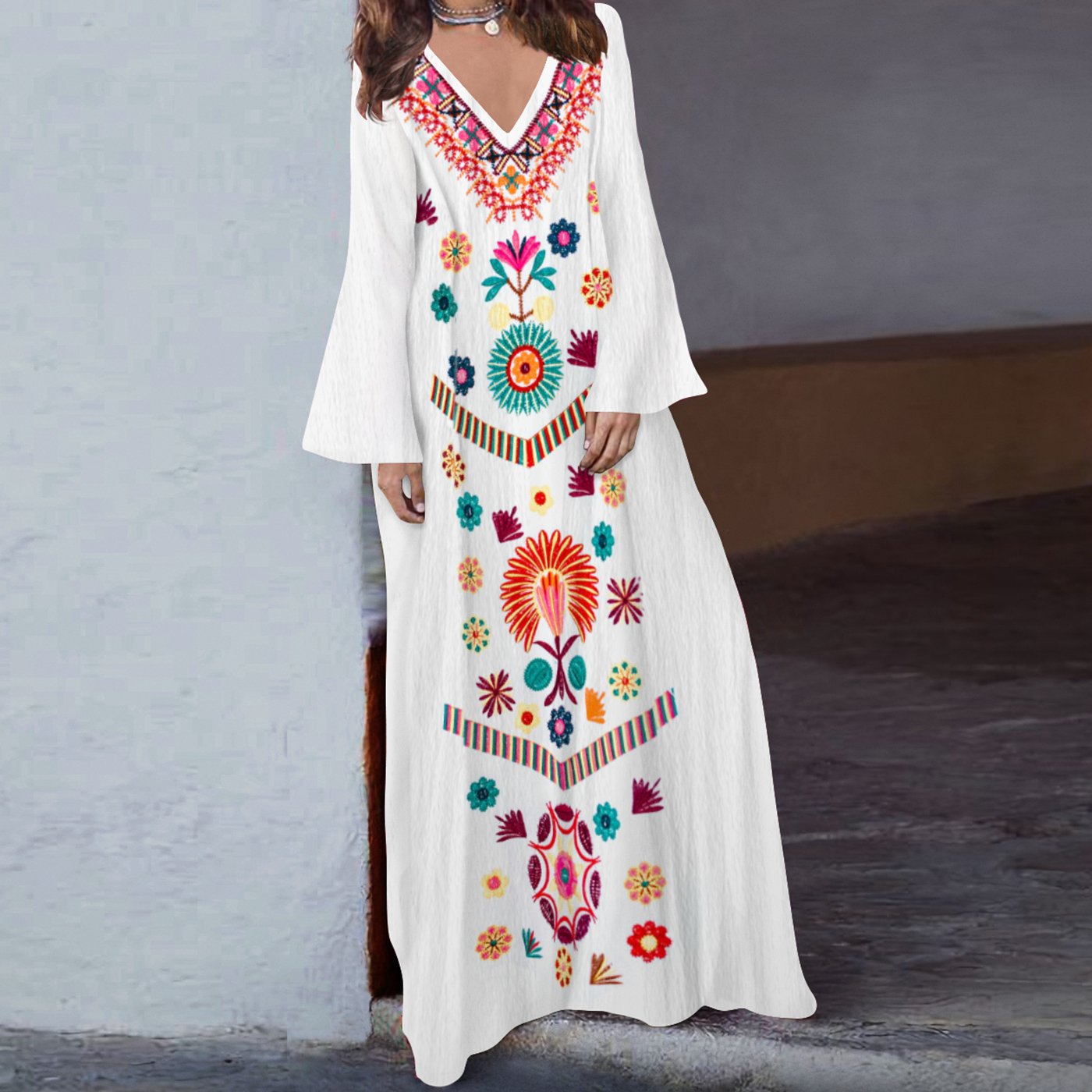 Be the first to review “Loose V-neck slit long skirt”