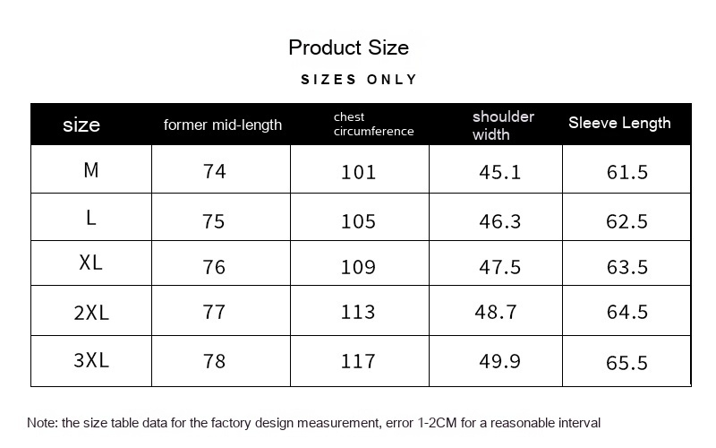 Size | M, L, XL, XXL, XXXL |