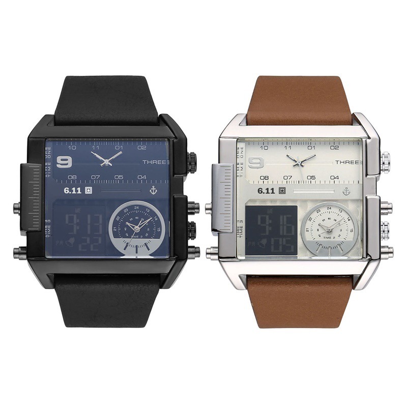 Product material: dual-display quartz movement, alloy case, leather strap