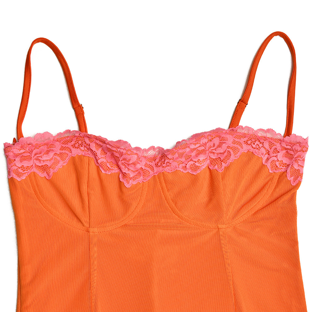 Color: Orange, using mesh milk Silk (lining) material as double layer, lace tube top design, zipper waist effect, full size spot