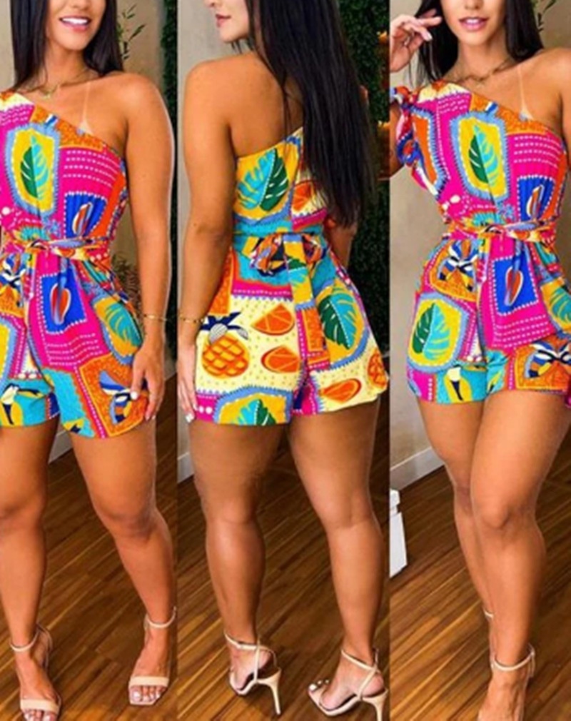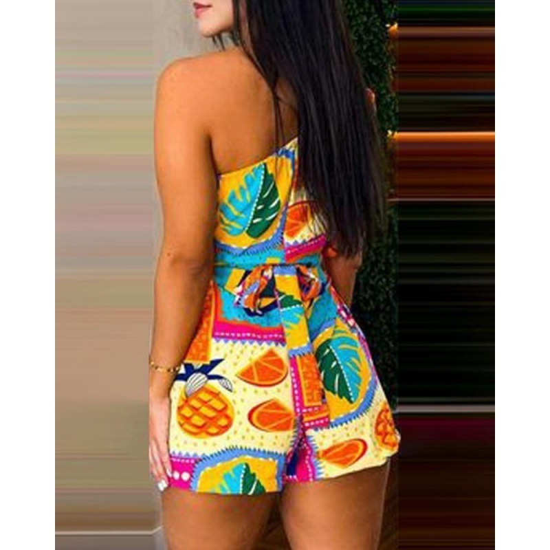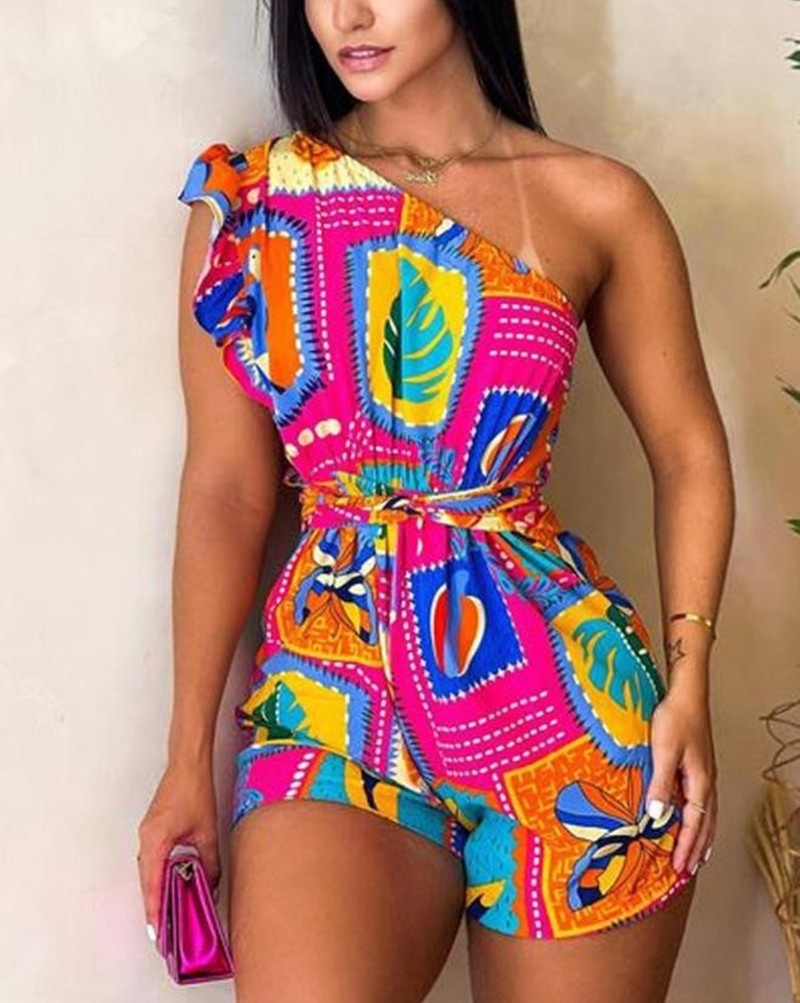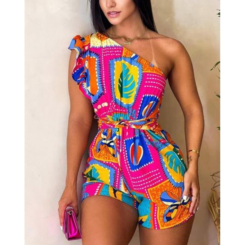 3 reviews for Printed Ruffle Sleeve Waist-controlled Lace-up Jumpsuit Shorts