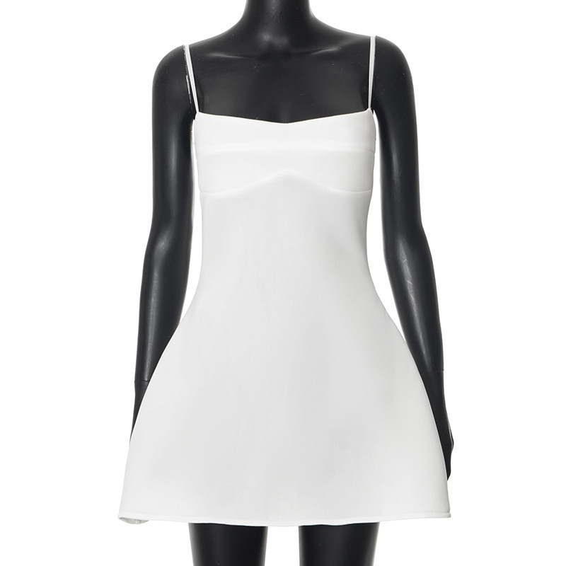 Solid Color Spaghetti Straps Sleeveless High Waist Dress