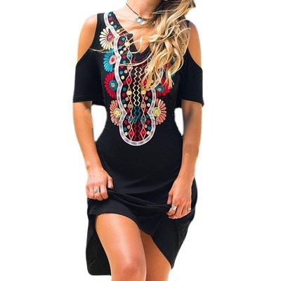Be the first to review “Women’s Printed V-neck Off-the-shoulder Dress”