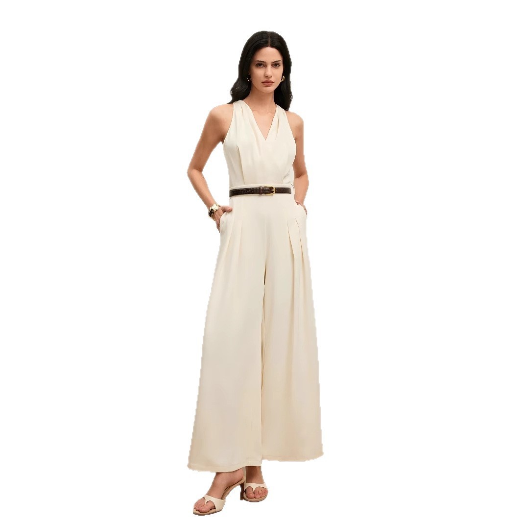 Women’s Solid Color And V-neck Sleeveless Fashion Casual Jumpsuit