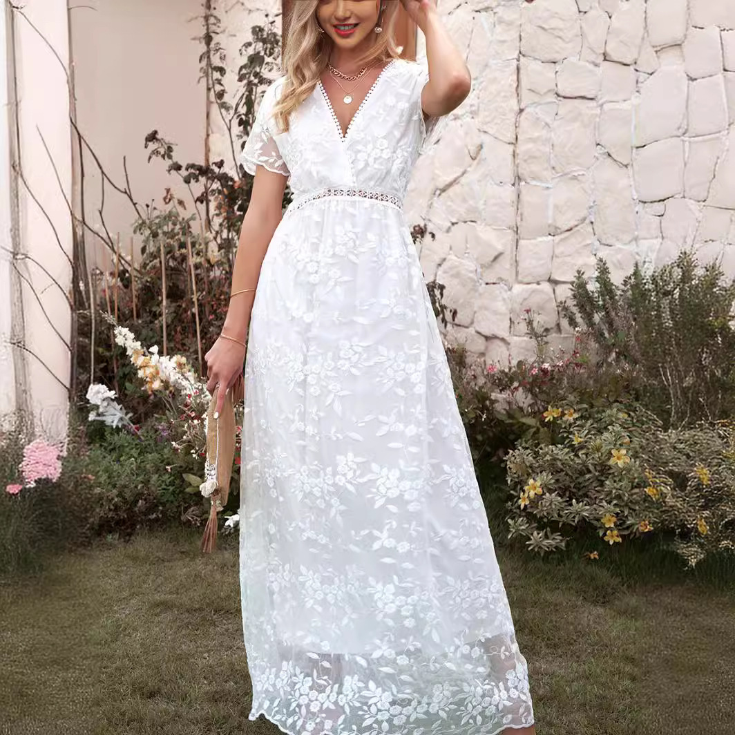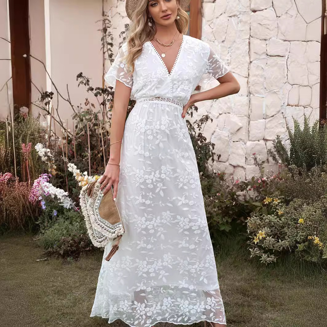 Women’s Solid Color Lace Crocheted Hollow Dress