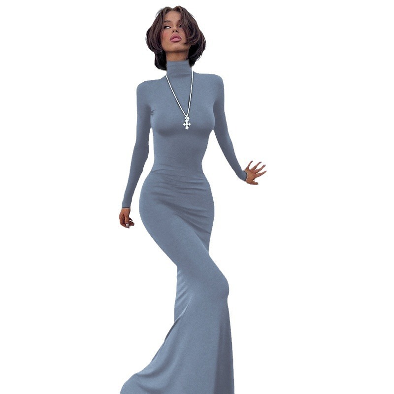 Women’s Turtleneck Long Sleeve Waist-tight Sheath Dress